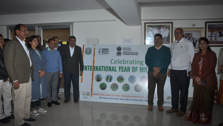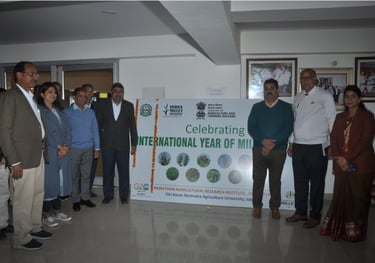 To celebrate the International Year of Millet 2023, declared by the honorable Prime Minister Shri Narendra Modi. This program is to create an awareness and focuses on “ Bringing back Millets” to the caloric rich diet by increasing the high yield varieties, the hybrid technology of seed, Pre-harvest and Post-harvest management, value addition and to commercialize the millet based products globally. This is the inaugural session organized by “INDIA MILLET INITATIVE & RAJASTHAN AGRICULTURAL RESEARCH INSTITUTE, DURGAPURA” to mainstreaming the millet in the right direction.