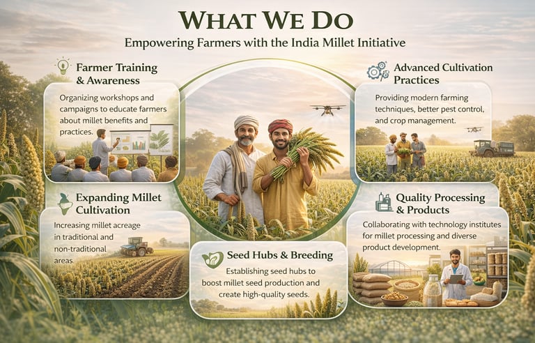 As a part of the India Millet Initiative, we have developed a special program for farmers to encourage them to participate in millet production. It would spread awareness and enrol new farmers to participate in millet production thereby expanding cultivable lands both in traditional and non-tradition areas.
